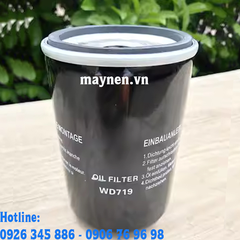 Lọc dầu máy nén khí WD719 được làm bằng sợi thủy tinh mỏng, có chức năng cơ bản là lọc bỏ bụi bẩn, tạp chất chứa trong dầu trước khi được đưa vào cụm đầu nén của máy nén khí.