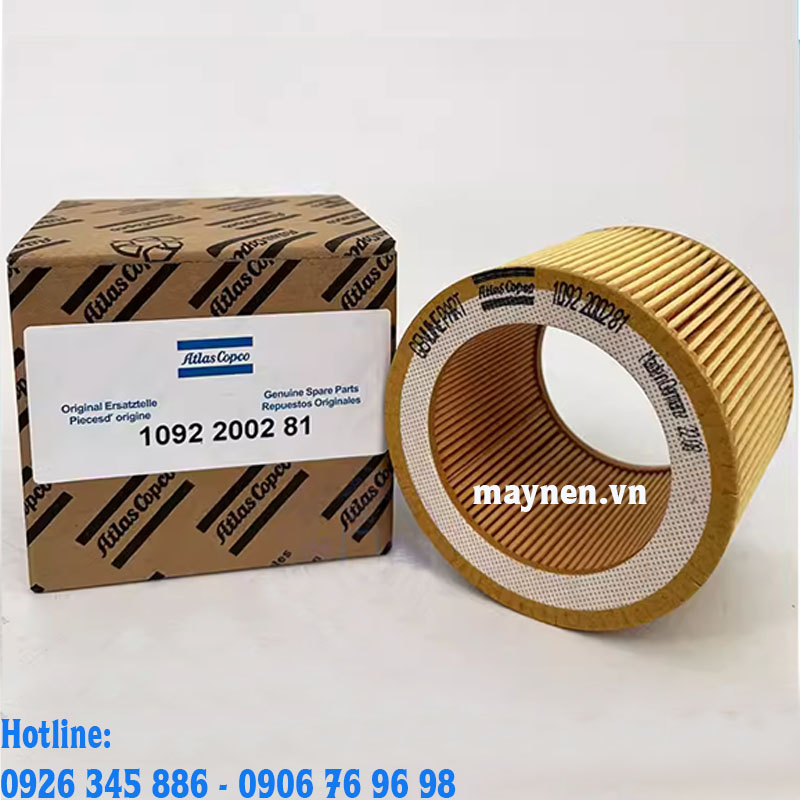 Lọc gió (lọc khí) máy nén khí Atlas Copco 1092 2002 81 / 1613 9001 00 là một bộ phận quan trọng của máy nén khí góp phần làm sạch không khí đầu vào. Lọc gió thường được lắp ngay tại cửa hút của máy nén khí, ở vị trí này lọc gió có thể loại bỏ được những hạt bụi hay các vật rắn khác khỏi dòng khí nhằm hạn chế sự ăn mòn hay trầy xước ở các chi tiết do những tạp chất này gây ra. Nói cách khác lọc gió giúp bảo vệ được bộ, lọc dầu, tách dầu và các chi tiết chuyển động khác.