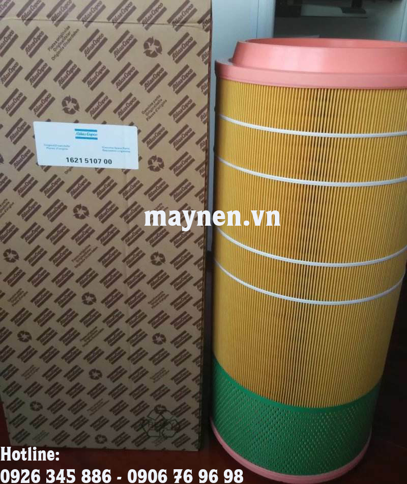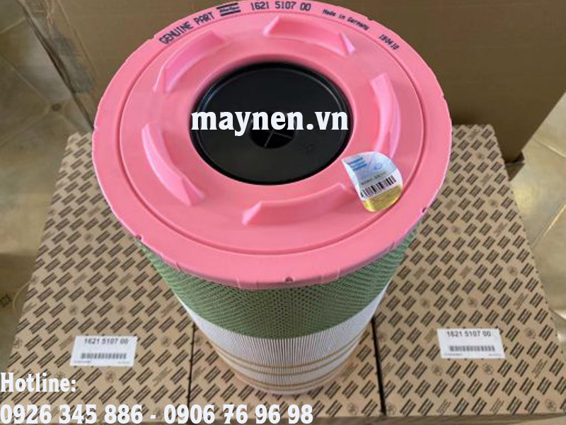 Lọc gió (lọc khí) máy nén khí Atlas Copco 1621 5107 00 / 1621 5075 00 là một bộ phận quan trọng của máy nén khí góp phần làm sạch không khí đầu vào. Lọc gió thường được lắp ngay tại cửa hút của máy nén khí, ở vị trí này lọc gió có thể loại bỏ được những hạt bụi hay các vật rắn khác khỏi dòng khí nhằm hạn chế sự ăn mòn hay trầy xước ở các chi tiết do những tạp chất này gây ra. Nói cách khác lọc gió giúp bảo vệ được bộ, lọc dầu, tách dầu và các chi tiết chuyển động khác.