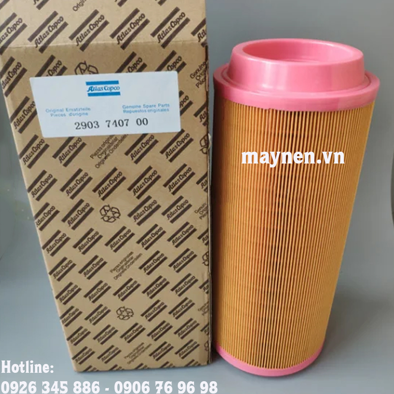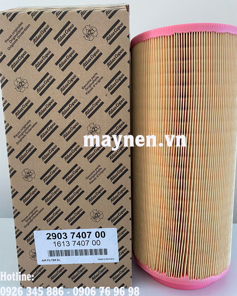 Lọc gió (lọc khí) máy nén khí Atlas Copco 2903 7407 00 / 1613 7407 00 là một bộ phận quan trọng của máy nén khí góp phần làm sạch không khí đầu vào. Lọc gió thường được lắp ngay tại cửa hút của máy nén khí, ở vị trí này lọc gió có thể loại bỏ được những hạt bụi hay các vật rắn khác khỏi dòng khí nhằm hạn chế sự ăn mòn hay trầy xước ở các chi tiết do những tạp chất này gây ra. Nói cách khác lọc gió giúp bảo vệ được bộ, lọc dầu, tách dầu và các chi tiết chuyển động khác.