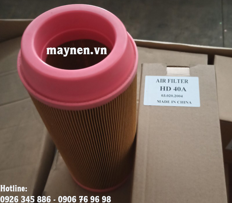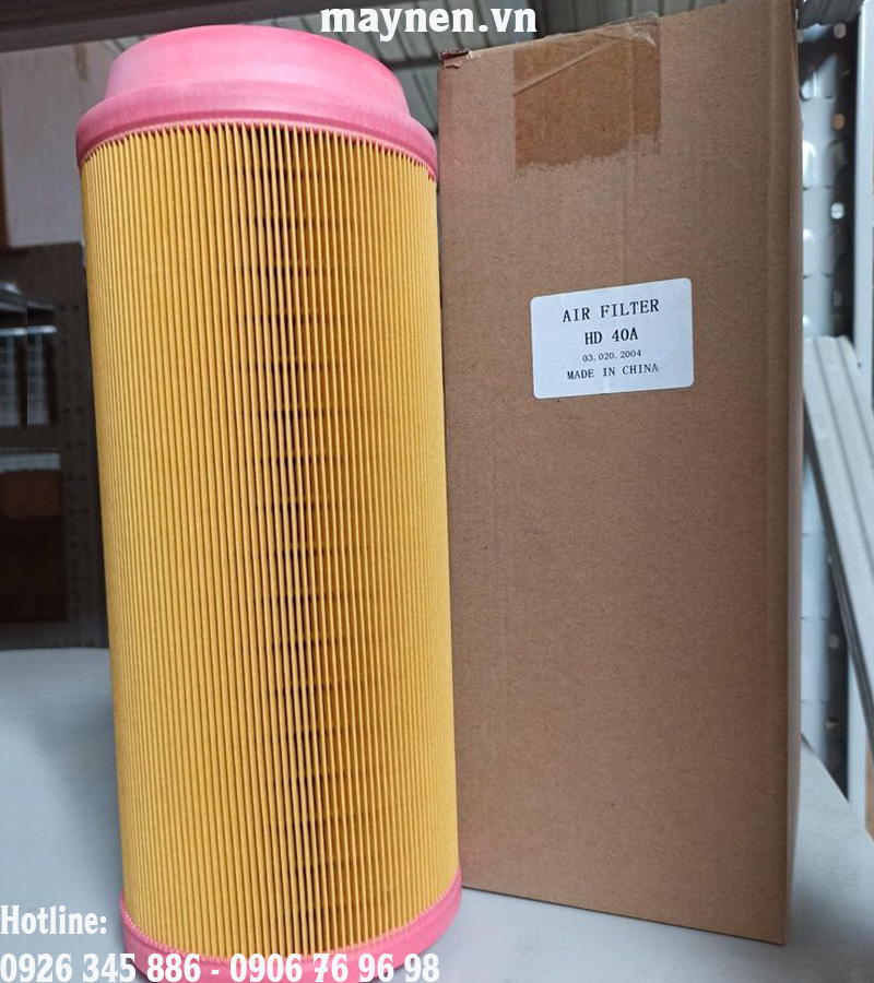 Lọc gió (lọc khí) máy nén khí Hande HD40A là một bộ phận quan trọng của máy nén khí góp phần làm sạch không khí đầu vào. bộ lọc gió thường được lắp ngay tại cửa hút của máy nén khí, ở vị trí này lọc gió có thể loại bỏ được những hạt bụi hay các vật rắn khác khỏi dòng khí nhằm hạn chế sự ăn mòn hay trầy xước ở các chi tiết do những tạp chất này gây ra. Lọc gió giúp bảo vệ được bộ lọc tách dầu, lọc dầu và các chi tiết chuyển động khác.