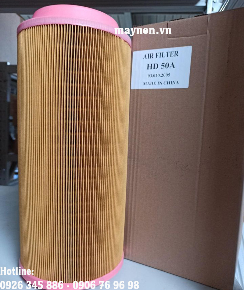 Lọc gió (lọc khí) máy nén khí Hande HD50A là một bộ phận quan trọng của máy nén khí góp phần làm sạch không khí đầu vào. bộ lọc gió thường được lắp ngay tại cửa hút của máy nén khí, ở vị trí này lọc gió có thể loại bỏ được những hạt bụi hay các vật rắn khác khỏi dòng khí nhằm hạn chế sự ăn mòn hay trầy xước ở các chi tiết do những tạp chất này gây ra. Lọc gió giúp bảo vệ được bộ lọc tách dầu, lọc dầu và các chi tiết chuyển động khác.