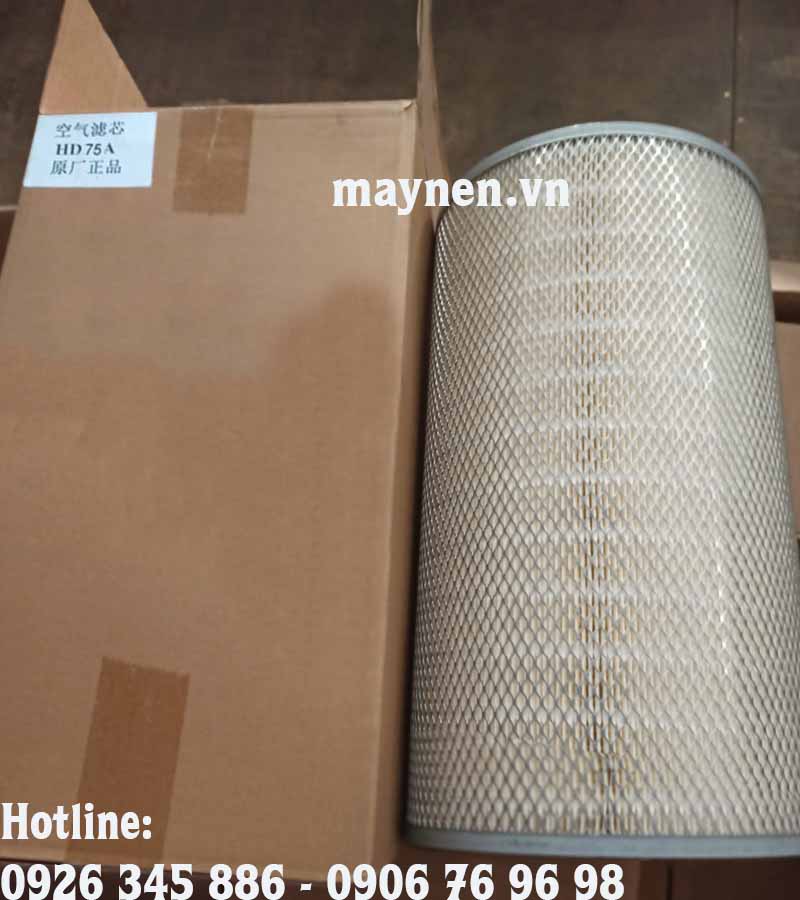 Lọc gió (lọc khí) máy nén khí Hande HD75A là một bộ phận quan trọng của máy nén khí góp phần làm sạch không khí đầu vào. bộ lọc gió thường được lắp ngay tại cửa hút của máy nén khí, ở vị trí này lọc gió có thể loại bỏ được những hạt bụi hay các vật rắn khác khỏi dòng khí nhằm hạn chế sự ăn mòn hay trầy xước ở các chi tiết do những tạp chất này gây ra. Lọc gió giúp bảo vệ được bộ lọc tách dầu, lọc dầu và các chi tiết chuyển động khác.