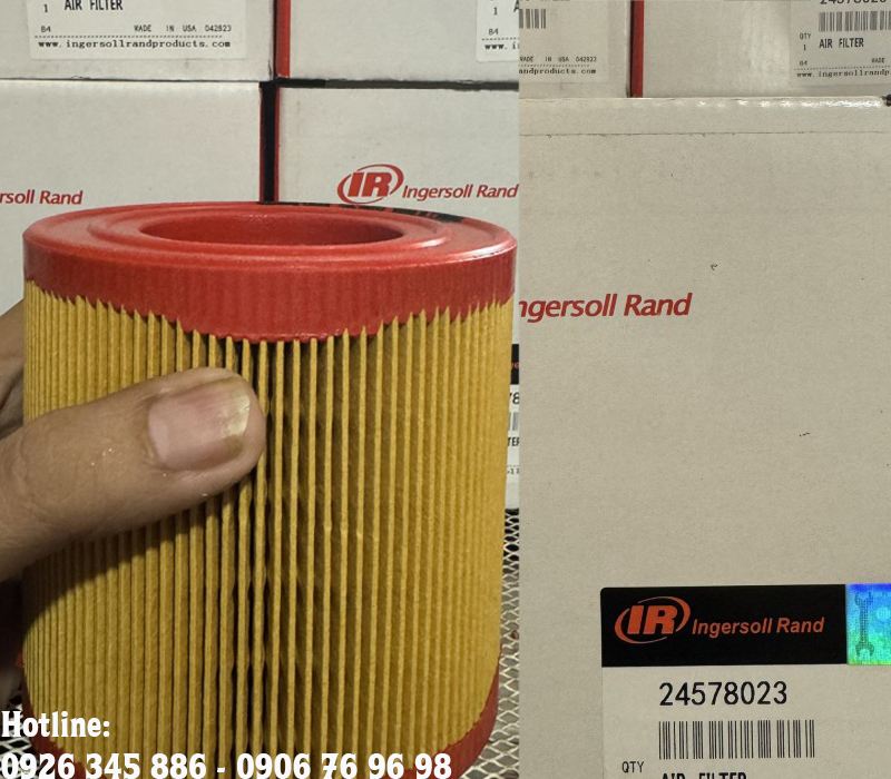 Lọc gió (lọc khí) máy nén khí Ingersoll rand 24578023 là một bộ phận quan trọng của máy nén khí góp phần làm sạch không khí đầu vào. Lọc gió thường được lắp ngay tại cửa hút của máy nén khí, ở vị trí này lọc gió có thể loại bỏ được những hạt bụi hay các vật rắn khác khỏi dòng khí nhằm hạn chế sự ăn mòn hay trầy xước ở các chi tiết do những tạp chất này gây ra. Nói cách khác lọc gió giúp bảo vệ được bộ, lọc dầu, tách dầu và các chi tiết chuyển động khác.