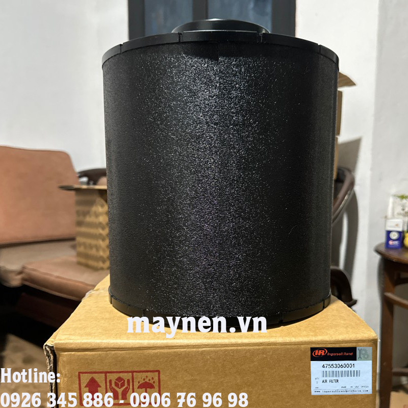 Lọc gió (lọc khí) máy nén khí Ingersoll rand 47553060001 là một bộ phận quan trọng của máy nén khí góp phần làm sạch không khí đầu vào. Lọc gió thường được lắp ngay tại cửa hút của máy nén khí, ở vị trí này lọc gió có thể loại bỏ được những hạt bụi hay các vật rắn khác khỏi dòng khí nhằm hạn chế sự ăn mòn hay trầy xước ở các chi tiết do những tạp chất này gây ra. Nói cách khác lọc gió giúp bảo vệ được lọc tách dầu, lọc dầu và các chi tiết chuyển động khác.
