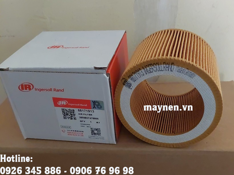 Lọc gió (lọc khí) máy nén khí Ingersoll rand 88171913 là một bộ phận quan trọng của máy nén khí góp phần làm sạch không khí đầu vào. Lọc gió thường được lắp ngay tại cửa hút của máy nén khí, ở vị trí này lọc gió có thể loại bỏ được những hạt bụi hay các vật rắn khác khỏi dòng khí nhằm hạn chế sự ăn mòn hay trầy xước ở các chi tiết do những tạp chất này gây ra. Nói cách khác lọc gió giúp bảo vệ được bộ, lọc dầu, tách dầu và các chi tiết chuyển động khác.